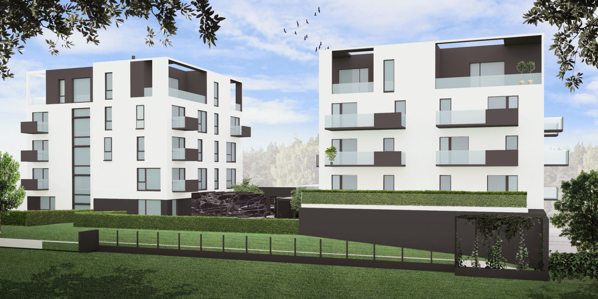 Dwa eleganckie i JEDNOCZESNIE nowoczesne budynki, zaprojektowane z wyjątkową dbałością o detale , tworzyą niezwykłą przestrzeń dla Twojego szczęścia i komfortu życia.